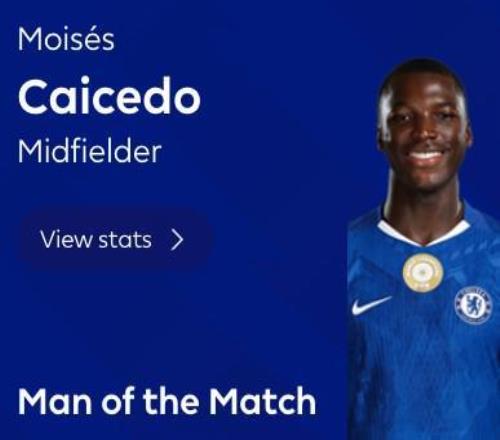 英超第10轮,切尔西客场1-0击败热刺,此役送出一次助攻的切尔西中场凯塞多当选英超官方全场最佳球员。