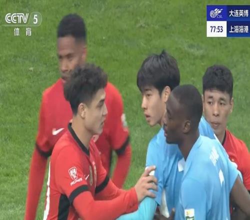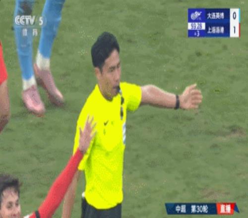 下半场,大连英博一次角球进攻投诉上海海港球员手球,VAR介入之后,主裁判没有表示,随后拉布亚德主罚任意球直接打门,皮球被颜骏凌扑了出去。