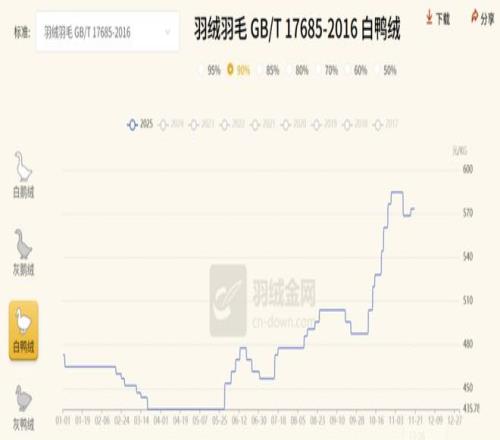 羽绒金网显示,2025年以来,白鸭绒的价格从不到480元/kg上涨到570元/kg以上。与羽绒服上游相比,羽毛球的生产企业更集中。也因此,羽毛球原材料的价格多由几家大厂“商议决定”。