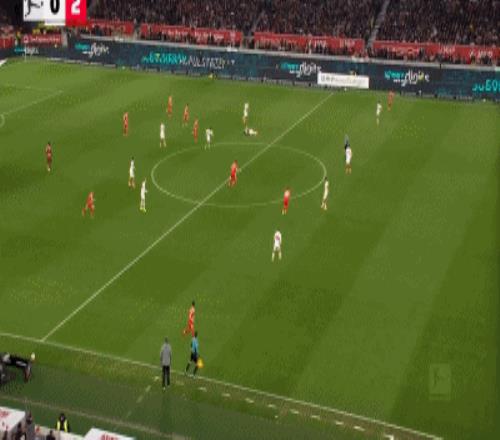 第34分钟,拜仁右路快攻,奥利斯带球持续斜切突入禁区左脚大力兜射,门将努贝尔奋力一扑,皮球擦着远端门柱外侧出了底线。第42分钟,斯图加特禁区右侧边上任意球机会,纳尔泰小禁区内抢点头槌攻门得手,只不过主裁认定这球越位在先,进球被吹掉。易边再战拜仁还是踢得不急不躁,第60分钟,凯恩替补登场,凯恩上来后就一下引爆拜仁的进攻。上来仅5分钟凯恩就抓住机会,拜仁中后场反击,基米希将球传给凯恩,凯恩中线处接球一路往前推进,斯图加特这边也无人上来紧逼,凯恩带球推到禁区弧顶前突然起脚大力抽射,皮球直入球门右下死角,拜仁2:0领先。
