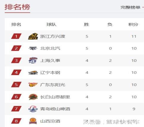 积分榜第6名则属于吉林队,他们目前已经取得一波4连胜,以4胜2负的战绩,排在积分榜第6名,在没有超级球星坐镇的情况下,吉林队本赛季能够取得这样的战绩,已经实属不易了。积分榜第7名则属于青岛队,他们的战绩是4胜1负,而第8名则是山西队,他们的战绩也是4胜1负。这两队都是少赛一轮的缘故,在排名上稍微吃亏。而积分榜第9名则是深圳队,他们的战绩是3胜3负,排在第10名则属于北控队。第11名则是同曦队。