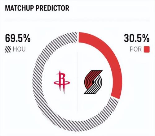 赛前,美媒ESPN对本场比赛进行了预测,火箭胜率高达69.5%,开拓者胜率仅有30.5%,差距依旧明显。