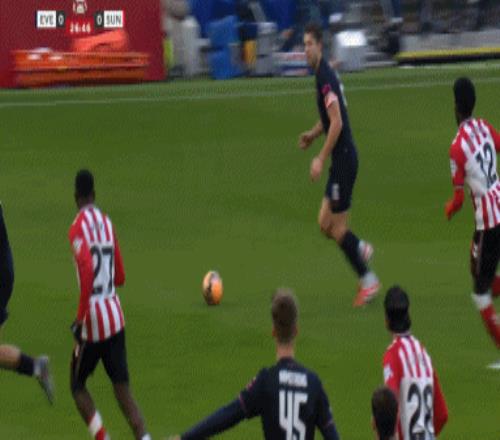 第41分钟,穆杰莱倒挂金钩打门,皮克福德救险