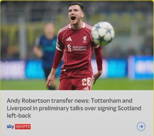 天空体育消息,热刺已经就收购罗伯逊接触了利物浦,苏格兰人的合同今夏到期,而和热刺方面的初始谈判已经开启。