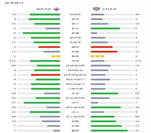 北京时间1月25日,意大利足球甲级联赛第22轮,佛罗伦萨主场对阵卡利亚里。比赛第31分钟,帕莱斯特拉送出助攻,克勒奇索伊破门得分;第47分钟,塞巴斯蒂亚诺-埃斯波西托助攻帕莱斯特拉再入一球;第74分钟,多多送出助攻,布雷夏尼尼为佛罗伦萨扳回一城。最终,佛罗伦萨1比2不敌卡利亚里。